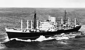 MV Otaki was a refrigerated cargo ship built for the New Zealand Shipping Company by John Brown's of Clydebank in 1953.[1] She was launched on 24 October 1952 and registered at London.