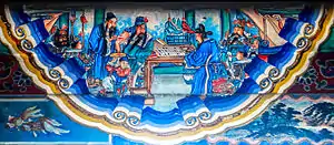 Ma Liang was later appointed as an emissary to meet the warlord Sun Quan, Liu Bei's ally. Before his mission to Wu, Ma Liang spoke to Zhuge Liang: "Now that I'm sent by the state with the mission to bring harmony and friendship between our two nations. May I have the chance to be introduced by you to General Sun Quan?"[7] Zhuge Liang answered: "You ought to try writing something yourself."[8] And so Ma Liang wrote a draft that said: "Our wise lord sends his advisor Ma Liang to convey my respects, bring gifts and extend prosperity to our frienship thereby continue on the praiseworthy legacy of Kunwu (昆吾) and Shiwei (豕韋). I'm a fortunate man of some talent from Jing and Chu region. Rarely, I'm rash in action and yet I have the virtue of seeing matters through to the end. With a calm heart, I turn my head toward you hoping you deign to accept me and give me assistance so I can accomplish my mission."[9] Sun Quan received and treated Ma Liang very respectfully.[10]