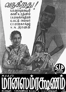 Maanasamrakshanam is a 1945 Indian Tamil language film, produced and directed by K. Subramaniam with S. D. Subbulakshmi, G. Pattu Iyer, V. N. Janaki, T. R. Ramachandran and Kali N. Rathnam in the lead roles.[1] The film is lost.[2]