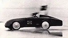In 1929, MG were attempting to develop their M-type Midget for racing. The rear axle leaf springs were mounted in sliding trunnions at the rear end, rather than the more usual shackles. The improved axle location encouraged good handling, which compensated when racing for the 750cc engine's low power output. Captain George Eyston and Ernest Eldridge saw this chassis under development and decided that it could form the basis for a speed record breaker. Fitted with larger brakes from a Mark II, a four speed gearbox and streamlined bodywork, it became the EX120. On 30 December 1930 at Montlhéry, EX120 set its first records, beating the Austin Sevens.[1][2][3]
