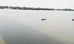 It enters Bangladesh near Tentulia in Panchagarh District, flows for 3 kilometres (1.9 mi) after Tentulia and returns to India.[5] After flowing through Uttar Dinajpur district in West Bengal and Kishanganj, Purnia and Katihar districts in Bihar, it enters Malda district in West Bengal.[6][7] The Mahananda divides the district into two regions — the eastern region, consisting mainly of old alluvial and relatively infertile soil is commonly known as Barind (Borendrovomee), and the western region, which is further subdivided by the river Kalindri into two areas, the northern area is known as "Tal". It is low-lying and vulnerable to inundation during rainy season; the southern area consists of very fertile land and is thickly populated, being commonly known as "Diara".[8]