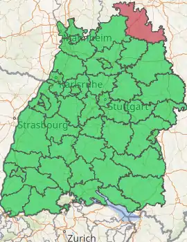 Main-Tauber-Kreis is a Landkreis (district) in the northeast of Baden-Württemberg, Germany. Neighboring districts are (from northwest clockwise) Miltenberg, Main-Spessart, Würzburg, Neustadt (Aisch)-Bad Windsheim and Ansbach (all in Bavaria), and the districts of Schwäbisch Hall, Hohenlohe and Neckar-Odenwald.