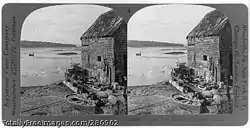 Other theories mention earlier places with similar names or claim it is a nautical reference to the mainland.[15] Captain John Smith, in his "Description of New England" (1614)[16] laments the lack of exploration: "Thus you may see, of this 2000. miles more then halfe is yet vnknowne to any purpose: no not so much as the borders of the Sea are yet certainly discouered. As for the goodnes and true substances of the Land, wee are for most part yet altogether ignorant of them, vnlesse it bee those parts about the Bay of Chisapeack and Sagadahock: but onely here and there wee touched or haue seene a little the edges of those large dominions, which doe stretch themselues into the Maine, God doth know how many thousand miles;" Note that his description of the mainland of North America is "the Maine". The word "main" was a frequent shorthand for the word "mainland" (as in "The Spanish Main")[17]