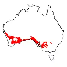 The most extensive area of this vegetation association in Australia today is found in the Great Victoria Desert. Prior to 1750, the largest area is estimated to have occurred in the Murray-Darling basin.[5]