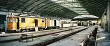 The carriage shed in Viernheim was closed on 1 July 1973. It became superfluous because the main workshop in Käfertal was dissolved due to the founding of the central transport workshop. Staff and vehicles were transferred from Viernheim to Käfertal. The Deutsche Gesellschaft für Eisenbahngeschichte (German Railway History Company, DGEG) operated a museum of narrow-gauge rolling stock on its grounds from 1976 to 1986. The listed building was in a poor state for a long time and was closed to the public after the removal of the historic OEG carriages. The sidings were removed, the sheds were cleaned up in 2008 and it was converted into an office complex in 2010.[4]