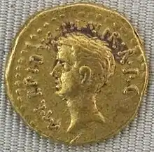 ![]() Denarius depicting Lepidus. The inscription is "III VIR R P C LEPIDUS PONT MAX", shorter for tresviri rei publicae constituendae Lepidus Pontifex Maximus, meaning "One of Three Men for the Regulation of the Republic, Lepidus, Chief Pontiff". | |