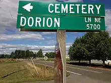 Among the places memorializing Dorion are two parks: Madame Dorion Memorial Park at the mouth of the Walla Walla River near Wallula, Washington,[13] and Marie Dorion Park, a Milton-Freewater, Oregon city park near the foothills of the Blue Mountains.[14] The Dorion Complex residence hall at Eastern Oregon University is in La Grande.[10] There is a plaque noting the place near North Powder where she likely gave birth.[10] Hers is also one of the 158 names of people important to Oregon's history that are painted in the House and Senate chambers of the Oregon State Capitol.[15] Her name is in the Senate chamber. St. Louis, Oregon, has a street named after her, Dorion Lane.[10]
