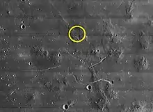 A site in the northern Marius Hills, located in the center of a five-kilometer circle in a shallow valley between four domes near a small sinuous depression, was one of nine potential Apollo landing sites studied in-depth as part of a 1968 Bellcom report describing the geology of those nine locations and potential mission plans. This site in particular, the Bellcom study suggested, could have offered the opportunity for up-close examination of planetary ridges similar to those located at the bottoms of Earth's oceans and sampling of a variety of material from the Moon's interior churned up during the area's highly active volcanic past.[11] The Bellcom study referenced an earlier 1968 study, prepared by the United States Geological Survey, that outlined a detailed mission plan for the proposed site. This plan included four EVAs using a Lunar Roving Vehicle and Lunar Flying Units for increased mobility in sampling the various features in the site radius.[12]