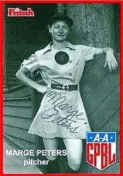 Marjorie L. "Marge" Peters (September 11, 1918 – April 1, 2016)[1] was an American baseball player. She was a pitcher who played from 1943 to 1944 in the All-American Girls Professional Baseball League. Listed at 5 ft 2 in (1.57 m), 112 lb. (57 k), she batted and threw right-handed.[2]