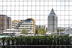 The Markthal (English: Market Hall) is a residential and office building with a market hall underneath, located in Rotterdam.[8] The building was opened on October 1, 2014, by Queen Máxima of the Netherlands.[9] Besides the large market hall, the complex houses 228 apartments, 4600 m2 retail space, 1600 m2 horeca and an underground 4-storey parking garage with a capacity of 1200+ cars.[10]
