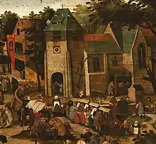 Markets generally have featured prominently in artworks, especially amongst the Dutch painters of Antwerp from the middle of the 16th century. Pieter Aertsen was known as the "great painter of the market." Both he and his nephew, Joachim Beuckelaer, painted market scenes, street vendors and merchants extensively.[53] Elizabeth Honig argues that painters' interest in markets was in part due to the changing nature of the market system at that time. The public began to distinguish between two types of merchant, the meerseniers which referred to local merchants including bakers, grocers, sellers of dairy products and stall-holders, and the koopman, which described a new, emergent class of trader who dealt in goods or credit on a large scale. With the rise of a European merchant class, this distinction was necessary to separate the daily trade that the general population understood from the rising ranks of traders who operated on a world stage and were seen as quite distant from everyday experience.[54]