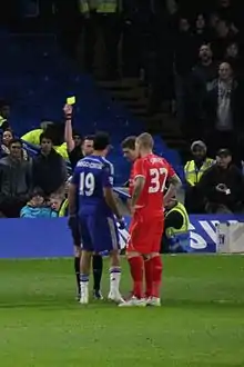 On 8 March 2015 in a sixth round FA Cup match against Blackburn Rovers, Škrtel was substituted and then taken to hospital after a collision with Rudy Gestede.[41] Later that month, Škrtel was given a three-match ban for violent conduct by the FA for a stamp on Manchester United goalkeeper David de Gea. He unsuccessfully appealed, claiming it to be unintentional.[42]
