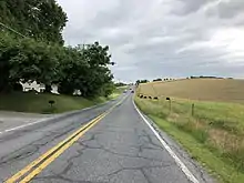 MD 854B begins at county-maintained Muller Road's eastern terminus adjacent to MD 97 just north of the Morgan Run Natural Environment Area property. The state highway heads north as a 15-foot (4.6 m) wide two-lane undivided road that crosses Morgan Run and follows one of the run's tributaries upstream out of Morgan Run's narrow valley. MD 854B widens to 18 feet (5.5 m) in width before intersecting Nicodemus Road, then heads north through farmland on top of a ridge. The state highway reaches its northern terminus at MD 32 (Washington Road) next to Carroll Community College.[1][3]