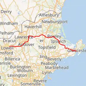| Gloucester | 38.0 | 61.2 | Exit 53 on Route 128 (formerly exit 14) | ||
