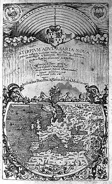 Lobelius' first publication, Stirpium adversaria nova (1571)[39] was written at the end of his stay in England, published in London and dedicated to Elizabeth I. It was written in collaboration with Pierre Pena (Petrus Pena), his fellow student and traveling companion from Provence,[40] and was an important milestone in botanical history, placing emphasis on medicine and botany as sciences that must be based on thorough and exact observation.[2] The extent of Pena's contribution is unknown, although his name appears first on the title page (see illustration).[40] Like his contemporaries, l'Obel's interest in plants was driven by their pharmacological properties. The Stirpium was l'Obel's major botanical work[40] and included information on about 1,200–1,300 plants that they had collected in the area around Montpellier, in the Cévennes, in the Low Countries, and in England, and included additional information on cultivation and the manufacture of plant products, such as beer.[2] This was one of the earliest attempts to classify plants according to their natural affinities, rather than their medical uses. L'Obel based this on the form of their leaves. His concepts of genus and family formed the basis of later more definitive classifications such as that of Linnaeus, and some of his groupings have survived into modern times. Although it was eventually to be the work on which l'Obel's reputation would rest, based on the system of classification that he set out,[40] at the time of its publication, it met with only moderate success and much criticism.[3]