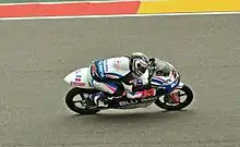 Born in Figueres, Alt Empordà, Viñales began competitive racing at the age of three in minimotos before moving onto motocross and eventually to circuit racing in 2002, competing in the Catalan 50cc Championship, before several successful seasons in 70cc "metrakit" bikes.[2] In 2007, he became champion of the Catalan 125cc Championship, and repeated the feat in 2008, as well as winning the Mediterranean Trophy. Also in 2008, he competed at selected events in the German IDM 125GP Championship for RZT Racing aboard an Aprilia RS 125 R, achieving a best result of seventh. He moved up to the CEV Buckler 125GP series in 2009, with the Blusens-BQR team, partnering Miguel Oliveira in the team. Viñales finished the season as Rookie of the Year as he finished as the runner-up to Alberto Moncayo in the championship standings, by just four points. Viñales claimed four successive podiums during the season, including a victory at Jerez.[3] In 2010, Viñales and Oliveira joined different teams from Blusens and battled it out for the championship title and despite winning only two races – both at Albacete – compared to Oliveira's four wins and two second places, Viñales took the title by just two points after finishing each of the season's seven races on the podium as Oliveira crashed out of one race at Albacete.[1] The single race for the 2010 European Championship title was also taking place at Viñales's winning circuit Albacete where he narrowly took his third victory of the year at the same venue.[4]