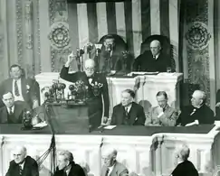 - Francisco Franco, the fascist dictator of Spain, which remained neutral during World War II, spoke in favor of world peace, "declaring that neither the Axis nor the Allies could destroy the other".[20] Franco, who had won the Spanish Civil War with assistance from both Germany and Italy, spoke in the city of Almería as the Axis powers were surrendering to the Allies in North Africa.[20]
