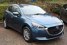 The Mazda2 is a subcompact/supermini/B-segment small car manufactured and marketed globally by Mazda since 1996, currently in its fourth generation. The Mazda2 was previously marketed as the Mazda Demio (a name it kept in some markets until 2019) and as the Mazda 121 and Mazda Metro.