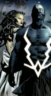 Medusa (Medusalith Amaquelin-Boltagon) is a fictional character appearing in American comic books published by Marvel Comics. Her name and aspects of her character are derived from Greek mythology as her hair has prehensile attributes like that of Medusa the Gorgon's hair. This character has psychokinetic control over her hair, a power she obtained through Terrigenesis. Due to this, she is able to expand it to double its normal length, pick locks with it, remotely lift objects (both animate and inanimate), and she often uses it as a rope to contain objects and people.