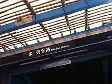 Mei Foo (Chinese: 美孚) is a Hong Kong MTR station located in Mei Foo Sun Chuen, Lai Chi Kok, New Kowloon. It is an interchange station between the Tsuen Wan Line and the West Rail Line, situated between Lai Chi Kok and Lai King stations on the Tsuen Wan Line and Nam Cheong Station and Tsuen Wan West stations on the West Rail Line. Mei Foo Station's colour is blue.