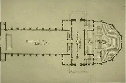Between 1865 and 1868 an alumni "Committee of Fifty" raised $370,000 (equal to one-twelfth of Harvard's entire endowment at the time) toward a new building in memory of Harvard men who had fought for the Union in the American Civil War,[10] particularly the 136 dead[11]—a "Hall of Alumni in which students and graduates might be inspired by the pictured and sculpted presence of her founders, benefactors, faculty, presidents, and most distinguished sons." When, about the same time,[10] a $40,000 bequest was received from Charles Sanders (class of 1802) for "a hall or theatre to be used on [any] public occasion connected with the College, whether literary or festive", a vision was formed of a single building containing a large theater as well as a large open hall, and thus meeting both goals.[10]