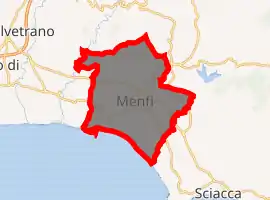 The town lies some 3 kilometres (2 mi) from the south coast of Sicily, between the rivers Belice and Carboj. In 1910, a full third of the population of the town of Menfi had emigrated to the United States.[3]