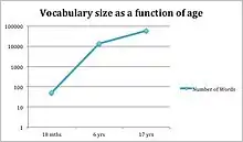 One aspect of research on the development of the mental lexicon has focused on vocabulary growth. Converging research suggests that at least English children learn several words a day throughout development. The figure at left illustrates the growth curve of a typical English-speaking child's vocabulary size.[5]