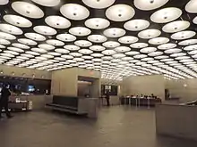 In advance of the Met Breuer's opening, The New York Times art critic Roberta Smith wrote that the Metropolitan Museum of Art and other major art institutions feared to miss out as the rest of the art world displayed more contemporary art exhibitions. Smith said that the Met excelled at "bringing older art to life" and that the Met Breuer's cautious opening exhibit showed unclear goals for the new building.[19] Wallpaper cited the renovations involved in the opening as being more representative of Breuer's design for the building, with a lower level sunken garden and a more welcoming emphasis on the sculptural design.[27] The Architect's Newspaper sees the Met's approach as one that treats the building itself as an artwork versus a building, with a focus on the patina of the materials as part of a holistic entity.[28]