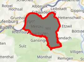 Mettauertal is a municipality in the district of Laufenburg in the canton of Aargau in Switzerland. On 1 January 2010 the municipalities of Hottwil, Etzgen, Mettau, Oberhofen and Wil merged to form the new municipality of Mettauertal.[3]