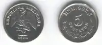 In 1905 a monetary reform was carried out in which the gold content of the peso was reduced by 49.36% and the silver coins were (with the exception of the 1-peso) reduced to token issues. Bronze 1- and 2-centavos, nickel 5-centavos, silver 10-, 20-, and 50-centavos and gold 5- and 10-pesos were issued.