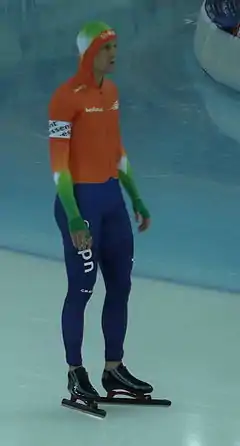 Michel Mulder (born 27 February 1986) is a Dutch speed skater. He is the 2014 Olympic Champion at the 500 m distance and 2014 Olympic bronze medalist at the 1,000 m distance. He finished second in the men's 500 metres event at the 2012 World Single Distance Speed Skating Championships.[2] His twin brother, Ronald Mulder, is also a speed skater. Despite being the defending champion for the 500m distance at the Olympic Games, Michel did not qualify for the 2018 Olympics.[3] His twin brother competed in the event and finished in 7th place.