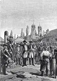 Also known as Manifest about joining of Polish oblasts (regions) to Russia in 1793 (see Second partition of Poland), it is an act by which Russian Empire pronounced its right on territories of the Right-bank Ukraine that until then was located as part of Rzeczpospolita.[1] The manifest was announced at town of Polonne near Zwiahel (today Novohrad-Volynsky) on 7 April [O.S. 27 March] 1793.[2]