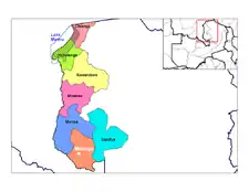 Location of Milenge town and district in Luapula Province, Zambia
