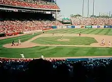 ![]() Third base grandstand marquee in 2000 | |