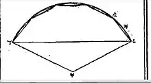 A hundred segment arc's chord can be considered as composite 10 segment-10 subsegments, thus sustutde into , after manipulation with infinite series he obtained: