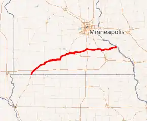 Highway 60 is the only state highway in Minnesota which runs from one border to another. The route runs in a general southwest-to-northeast direction.