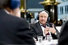 In March 2014, when the PNL failed to include him on its list of candidates for that year's European Parliament election, Diaconu decided to run as an independent.[11] Although his candidacy was initially rejected by the electoral authorities because the 2012 court decision had found him ineligible for political office, an appeals court placed him on the ballot, finding that he could in fact run for other offices than the one involved in the older case (that is, Senator). During the campaign, he built up the image of an independent persecuted by bureaucratic institutions determined to keep him out of office, benefiting from favorable media coverage.[12] He won some 380,000 votes or 6.8% of the national total (ahead of two political parties that won seats), assuring him a term as an MEP.[13] As an independent, he was only required to win 3.1% of the vote in order to secure a seat; he obtained double digits in the counties of Constanța (13.3%) and Botoșani (10.4%).[12] He is thought to have significantly eroded the PNL vote, with one party member, Nicolae Robu, claiming Diaconu cut its performance by nearly half.[14] In the 2014–2019 legislature of the European Parliament, he sat with the Alliance of Liberals and Democrats for Europe Group,[15] and was vice president of the Culture Committee.[16]