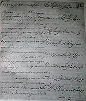 Mirza Shafi wrote very delicately and at the same time brought beauty and variety: he adapted letters to the content of the text. If he had to write about ordinary things, then he clothed them in everyday clothes, beautiful ones in festive clothes, in letters to women he wrote with special thin handwriting.[22]