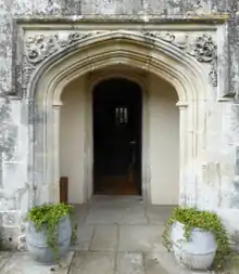 The old manor house burnt down in 1868 and was completely rebuilt as a farmhouse, categorised as a grade II listed building since 1955.[6] The ruins of a mid-16th century gatehouse lie to the south of the house; these and the adjoining garden walls, probably built in the mid-19th century at the same time as the farmhouse, are grade II* listed.[7][8] The house now has six reception rooms and six bedrooms. Around the courtyard are a cottage, stables and farm buildings. The River Otter forms part of the eastern boundary of the estate. In January 2014 the house with 228 acres was offered for sale for £3.5 million.[9]