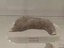 Members of Molpadiidae are fairly small, plump sea cucumbers with a smooth or slimy skin and no tube feet. They are relatively inactive and live in a "U"-shaped burrow in sand or mud at the bottom of the sea, often at considerable depths. Their tentacles spread out above the sediment to catch food particles.[2]