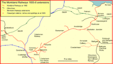 The New Line is sometimes referred to as the Bathgate and Coatbridge Railway, but it was never independent of the Monkland Railways. However an independent Bathgate, Airdrie and Coatbridge Railway had been proposed in 1856.[7]