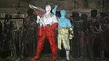 On April 12 one of the statues was painted in the colours of the Polish flag, with another one of the statues standing right behind being painted with the Ukrainian colours. Under the soldiers there is an inscription remembering about the Katyn massacre.
