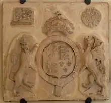 A large sculpted stone tablet displaying the royal arms of one of the Tudor monarchs (1485-1603) with other heraldic elements, formerly at Moor Hayes, is now displayed in Tiverton Museum (item TIVMS: 1977.727).[34]