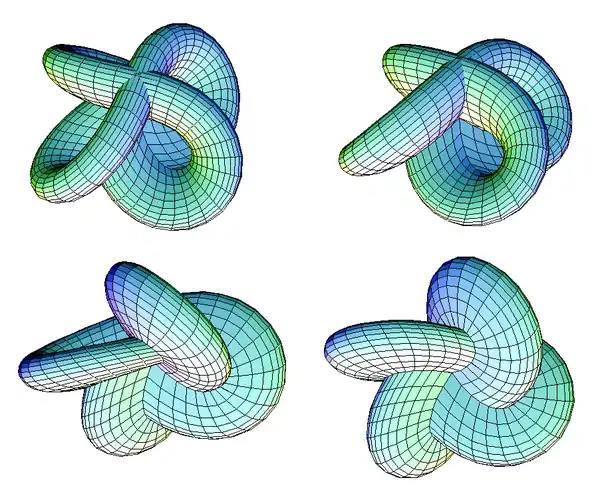 - Four different views of the Morin surface: the first two are shown with "passage barriers" cut out, the last two are views from the "bottom".