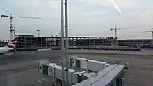The first stage of Terminal 2 is being built as the part of the 2018 FIFA World Cup program, for international flights. When completed, the international flights operated at concourse B will all be shifted to the new segment, which will become the second segment of a new passenger terminal and will be twice the size of Terminal 5 at London Heathrow – the equivalent of 61 football fields. New premises area of 235,000 sq. meters (2,529,000 ft1) (segment T2) will be mounted to the left wing of the existing terminal. There will be about 100 check-in counters, 40 self check-in kiosk, as well as special jetways for the world's largest passenger aircraft Airbus A380. As a result, the total area of the passenger terminal (including the expansion of the current main segment T1) will increase by more than double to nearly 500,000 square meters.[14] It was designed by British company RMJM and uses the under-the-roof concept, which means that passengers from all flights will be serviced within a single terminal. One of Europe's largest air hubs – Amsterdam's Schiphol Airport – operates under this concept.[15] The construction was initially planned to be finished by March 2018, however, due to immediate change of the contractor, the construction delayed, significantly. During FIFA-2018, in new terminal worked only specific arrival and departure zones and they worked only for the football fans, travelling with the fan-passports. The terminal will fully finish its construction with all remaining parts by first quarter of 2020.[16]