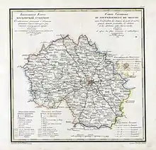 Moscow Governorate, together with seven other governorates, was established on December 29 [O.S. December 18], 1708, by Tsar Peter the Great's edict.[1] As with the rest of the governorates, initially, neither the borders nor internal subdivisions of Moscow Governorate were defined; instead, the territory was defined as a set of cities and the lands adjacent to those cities.[2] Later, Moscow Governorate was subdivided into 13 uyezds.