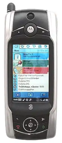 Motorola A925 is a 3G smartphone from Motorola using Symbian OS. Among the most notable features is its built-in A-GPS. The A925 was preceded by the featurewise essentially identical Motorola A920, and was succeeded by the Motorola A1000.