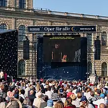 The Munich Opera Festival (German: Münchner Opernfestspiele) takes place yearly in the Bavarian capital from late June to late July. Preceding on the calendar the two nearby festivals of Bayreuth and Salzburg, which both start in late July, the festival summarizes the concluding main season's work of the Bavarian State Opera, which administers it, and offers premieres of new stage productions by the company, Germany's largest.