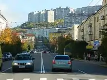 Although there was a building boom in the early twentieth century's arms races, Murmansk's population has been in decline since the Cold War, from 468,039 (1989 Census);[9] 336,137 (2002 Census);[10] 307,257 (2010 Census);[3] to 299,148 (2014 estimate).[11] It remains the largest city north of the Arctic Circle, with over 100,000 more inhabitants than Norilsk, Russia, and is a major port on the Arctic Ocean.[12]