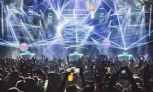 Mustard's production style has been described as an up-tempo, radio-friendly, club-oriented, catchy hip hop style which he calls "ratchet music".[4][5][6][7] Mustard's body of work has been recognized by critics as sonically cohesive and recognizable in that many of his tracks have recurring, identifiable motifs.[24] Most apparent is his producer signature "Mustard on that beat, ho!" which prefaces the beat drop in many of his songs.[24] This signature is often strategically placed to span the third and fourth counts of the measure preceding the song's drop to make it more catchy. On a compositional level, however, Mustard's motifs also include: an ambient chant of "Hey!" on the off-beats in the background of his music;[24] the emphasized, minimalist bass synth opening to many songs (most notably on My Nigga, R.I.P., and Rack City),[25] 808 kicks[26][27][28] and the use of crisp hand-claps and snap-snares.[29]